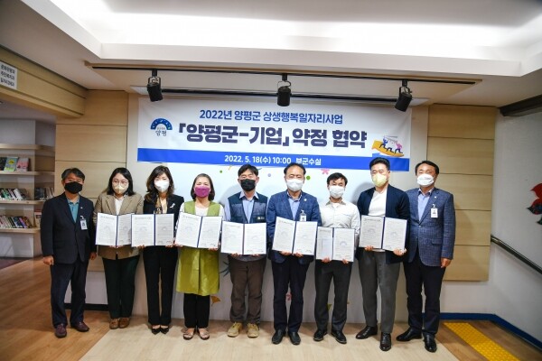협약식 후에는 간담회를 통해 참여기업 대표들이 상생행복일자리사업이 중소기업에 많은 도움이 됐으며 사업을 추진하며 겪은 애로사항과 양평의 발전방향에 대한 의견을 나눴다.
