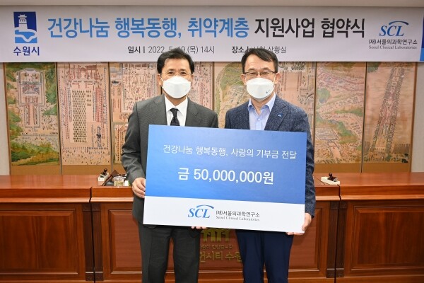 서울의과학연구소, 수원시와 취약계층 지원사업 협약 체결하고 5000만원 기부