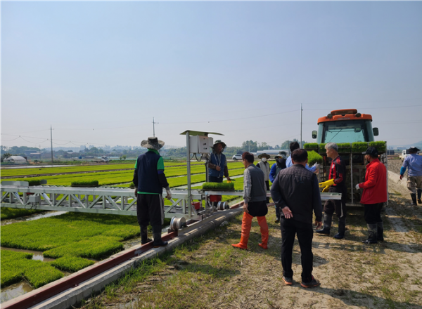 이번 시연회는 벼 육묘에 소요되는 노동력과 생산비를 절감할 수 있는 신기술 보급을 위해 진행됐다.