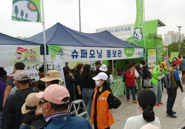 이번에 진행된 행사에는 거리두기 해제 후 평택에서 열린 첫 대면행사인 만큼 평택시민 건강걷기대회에 참여한 4천여명의 시민들을 대상으로 슈퍼오닝 홍보관을 운영해 평택시 농·특산물 통합브랜드 슈퍼오닝 품목인 쌀, 배, 오이, 애호박, 토마토 등을 전시와 더불어 시식회를 진행, 평택농산물의 우수성을 홍보해 대회에 참여한 시민들로부터 큰 호응을 얻었다.