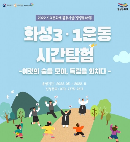 화성시는 올해 ‘화성3·1운동 시간탐험 ?여럿의 숨을 모아, 독립을 외치다-’로 문화재청 공모사업에 선정돼 화성시문화재단이 운영하는 제암리3·1운동순국기념관과 화성3·1운동만세길을 대상으로 해당 사업을 추진한다.