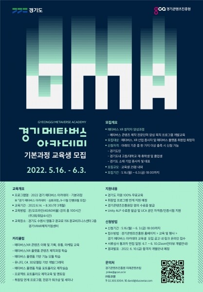 김규식 경기도 미래성장정책관은 “이번 사업은 도의 ‘가상/증강현실 아카데미’ 인재양성 경험을 토대로 올해 신규 추진하는 교육사업으로 도내 우수인재의 메타버스 산업 유입을 촉진하고 산업 기반을 다지는데 기여하게 될 것”이라며 “메타버스 분야를 선도할 우수개발자의 많은 참여를 기대한다”고 말했다.