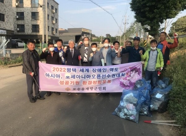 이의헌 포승읍장은 “평택 세계장애인 역도대회의 성공적인 개최를 위해 환경정화활동에 참석해주신 재향군인회 회원님들께 깊은 감사를 드린다”며 “포승읍에서도 주민자치위원회, 자원봉사 나눔센터 등 민간단체와 협력해 깨끗한 포승읍을 만들기 위해 최선을 다하겠다”고 했다.