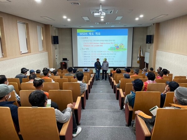 이번 교육은 여름철 일사병 등 산림일자리 사업장 근로자의 건강을 위해 산림조합중앙회 임업기술훈련원 소속 전문교관을 초빙, 녹지공간에서 사용하는 예취기, 엔진톱, 낫 등의 임업기계 사용법과 부주의로 발생하는 산림사업장 내 안전사고 현황 및 사례, 응급처치 방법 등을 교육했다.