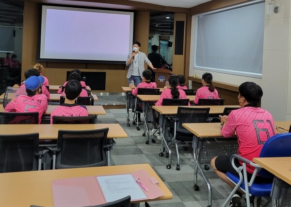 견학 프로그램은 홍보동영상시청, 정수처리공정 설명, 현장안내와 체험 코너인 ‘수돗물 블라인드 테스트’를 진행하며 학생들의 관심을 집중시키고 있다.