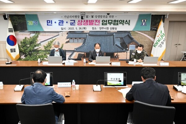 양주시는 26일 시청 상황실에서 광적면 민관군 상생발전협의위원회를 발족하고 지역갈등 해소와 군작전 수행을 위한 업무협약 양해각서를 체결했다고 밝혔다.