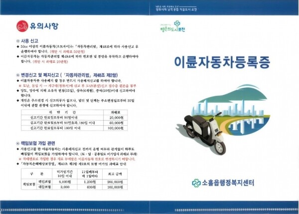 ▲ 포천시 소흘읍, 이륜자동차 등록증 보관 케이스 제작 배부