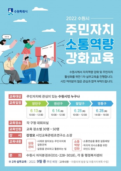 교육은 6월 13일 장안구를 시작으로 권선구·팔달구·영통구 구청 대회의실에서 진행된다.