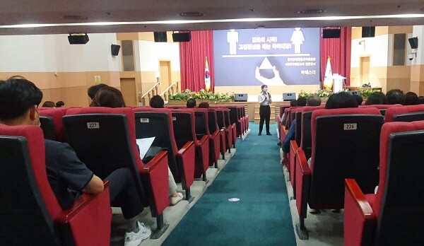 ‘변화의 시작 고정관념을 깨는 폭력 예방 교육’을 주제로 강의한 박에스더 한국양성평등교육진흥원 소속 전문 강사는 남성과 여성에 대한 젠더 고정관념 사례 젠더 고정관념으로 인한 4대 폭력 발생 사례 젠더 고정관념이 조직에 미치는 영향 4대 폭력 예방법 등을 설명했다.