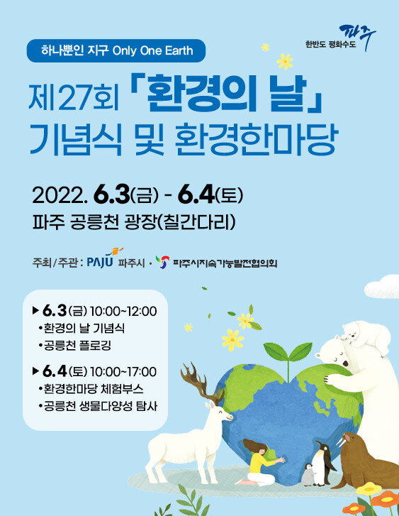6월 4일에는 파주시지속가능발전협의회 주관으로 손수건 만들기, 에코마켓, 자원순환 캠페인 등 17개 환경한마당 체험·홍보 부스가 운영된다.