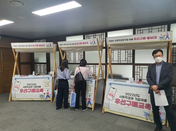 또한 의정부시 마을·사회경제 지원센터는 관내 사회적경제 기업의 제품 및 서비스를 소개하고 제품안내 바인더와 센터 홈페이지 ‘우선구매 바로가기’탭을 통해 쉽게 사회적경제 제품을 구매하는 방법에 대해 설명하는 시간을 가졌다.