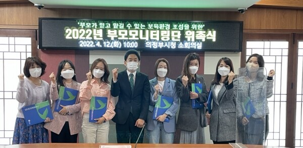 의정부시는 지난 4월 12일 시청 신관 소회의실에서 어린이집 보육환경개선을 위한 2022년 의정부시 부모모니터링 단원에게 위촉장을 전달했다.