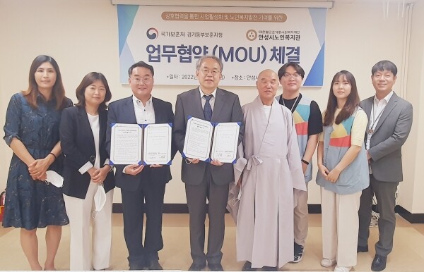 안성시노인복지관에서 진행된 이번 업무 협약식에는 국가보훈처 양홍준 경기동부보훈지청장과 관련 실무진, 복지관의 운영지원사찰인 칠장사 주지 지강스님과 김동선 안성시노인복지관장을 비롯한 직원들이 참석했다.