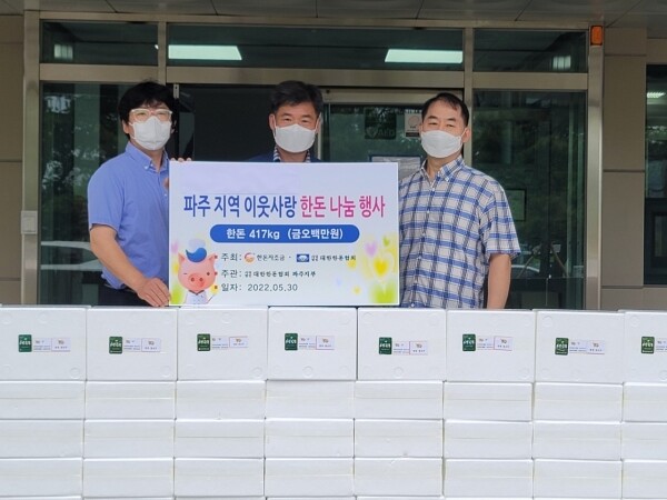 장석철 한돈협회 지부장은 “안전한 축산물인 한돈 돼지고기를 도움이 필요한 이웃에게 전달하게 돼 기쁘다”며 “앞으로도 이웃과 함께하는 마음을 잃지 않는 한돈협회 파주시지부가 되겠다”고 말했다.