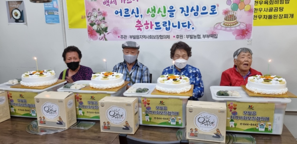 이번에 개최된 생신잔치 행사는 부발읍지역사회보장협의체에서 추진하고 있는 마을복지사업 중의 하나로 김학엽 부발읍장은 “지금까지 코로나로 인해 행사가 개최되기 힘들었으나 앞으로는 외롭게 생신을 맞는 홀몸어르신들을 위해 생신 상을 준비해 주민과 함께 온정을 나누는 자리를 지속적으로 마련하겠다”고 감사의 뜻을 전했다.