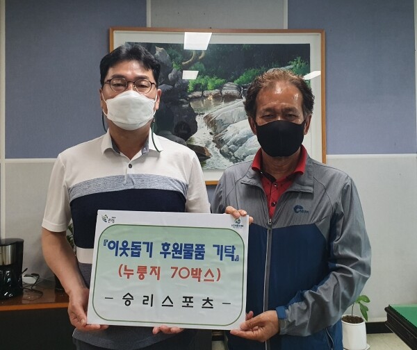 [뉴스써치] 승리스포츠는 지난 5월 30일 관고동행정복지센터에 이웃돕기 성품으로 누룽지 70박스를 기탁했다.