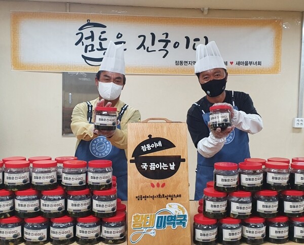 점동면 지역사회보장협의체 위원들은 매월 치아가 안 좋고 소화 기능이 저하된 어르신들의 기호에 맞을 수 있도록 좋은 식재료와 조리법까지 세심하게 신경쓰며건강하고 맛있는 황태 미역국 150인분을 직접 끓여 지원했다.