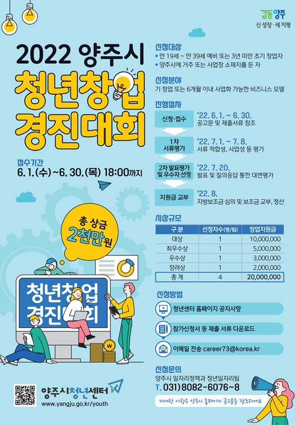 양주시, ‘2022 청년창업 경진대회’개최. 30일까지 참여자 모집