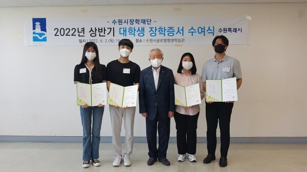 수원시장학재단은 2일 수원시글로벌평생학습관에서 장학증서 수여식을 열고 우수·희망·과학·행복 장학금 등 4개 분야 장학생에게 장학증서를 전달했다.