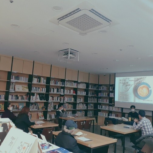 ‘퇴근길 커피와 책’은 금촌무지개작은도서관이 금촌역에 위치한 이점을 살려 기획한 프로그램으로 퇴근길에 커피와 함께 독서 모임이 진행된다.