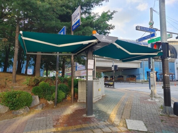 시는 유동 인구가 많은 꿈나무 근린공원 앞 사거리 횡단보도와 지행역 출구 사거리 앞 등 5곳에 스마트 그늘막을 설치했다.