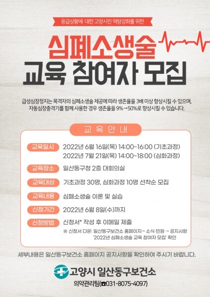 ▲ 고양시 일산동구보건소, 심폐소생술 교육 참가자 모집