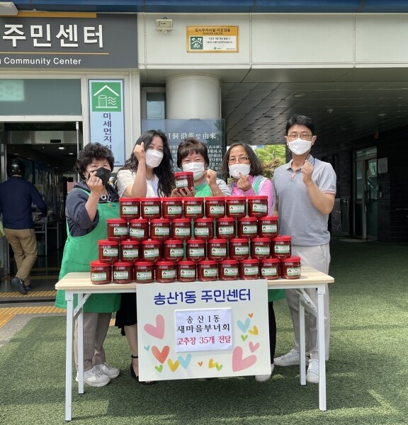 김보경 송산1동장은 “항상 나눔문화 확산에 앞장서주시는 새마을부녀회 회장님과 회원분들께 감사드린다 이웃 사랑이 가득 담긴 고추장은 관내 어르신들께 잘 전달드리겠다”고 말했다.