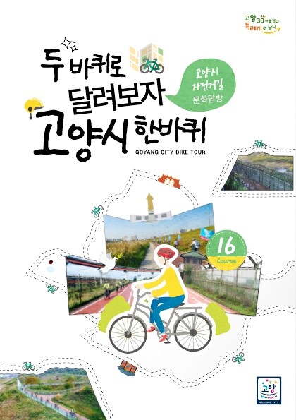 고양시 자전거길 16코스에 대한 상세지도와 관광지를 소개하고 후면에는 올바른 자전거 이용법 등을 담고 있다.