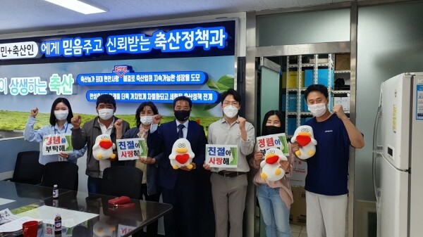 이날 함께한 김광배 한국오리협회 경기도지회 안성지부장은 “클린 안성을 만들기 위해 행정에서 앞장서서 청렴과 친절을 실천해줘서 감사하다”며 “공무원들이 함께 노력해준 덕분에 최근 5년간 관내 오리농가에서 고병원성 AI가 한 번도 발생하지 않은 것 같다”며 고마움을 표했다.