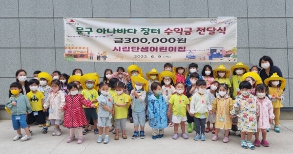 이날 기부한 성금은 지난 3일 어린이집 원생들이 집에서 사용하지 않는 장난감·문구 등을 가져와 직접 판매하는‘아나바다 장터’ 행사를 통해 얻은 수익금으로 마련했다.