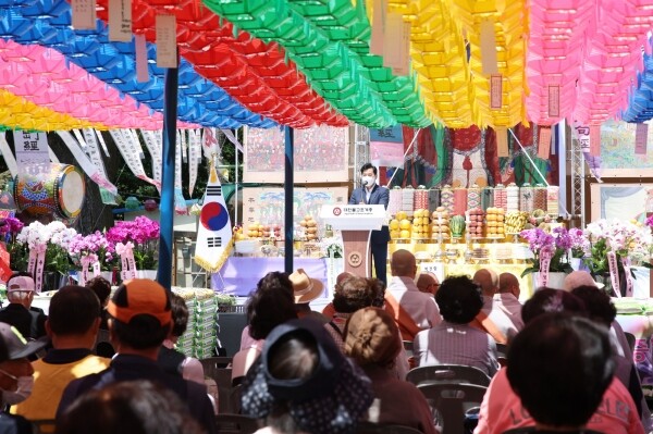 성품 전달은 호국보훈의 달을 맞아 나라를 위해 목숨을 바친 호국영령과 순국선열을 추모하고 극락왕생을 발원하는 제8회 순국선열 군·경 합동추모 및 영상대재와 함께 진행됐으며 관내 보훈단체에도 쌀 108포를 별도로 지원했다.