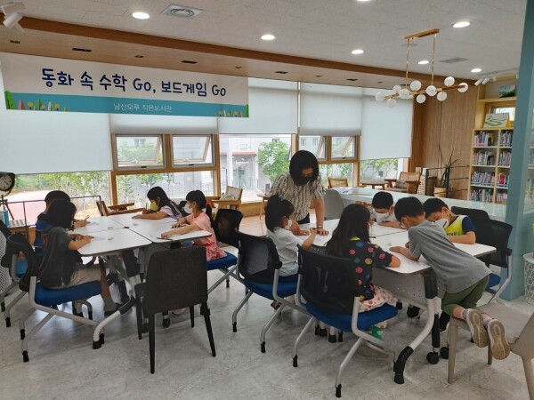 또한 유은숙 독서지도사가 남산모루 작은도서관에서 초등학교 1∼3학년 대상으로 진행한 “동화 속 수학 GO 보드게임 GO” 강좌는 원의 개념, 오름차순의 이해 등 수학적 개념을 배우고 스킵피티, 젝스님트, 큐비츠 등 다양한 보드게임을 통해 친구들과 소통하는 시간을 가졌다.