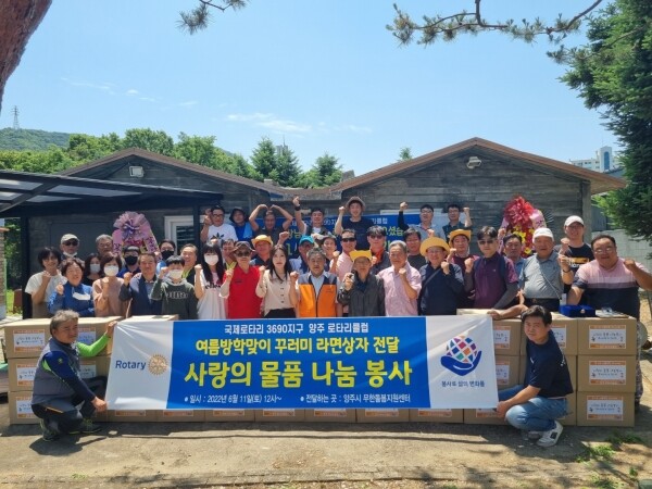 이날 전달된 라면은 양주로타리클럽 회원들이 자연을 보호하고자 추진하는 폐지모금 사업으로 성금을 모았고 부족한 부분은 양주로타리클럽 회원들의 후원금을 모아 라면을 구입함으로써, 지역사회 어려운 이웃들을 위한 따뜻한 마음이 더해져 주위를 훈훈하게 했다.