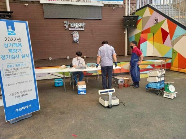 수원시 관계자는 “정기검사를 받지 않고 상거래용으로 저울을 사용하면 ‘계량에 관한 법률’에 따라 100만원 이하 과태료가 부과될 수 있다”며 “정기검사 일정·장소 등은 수원시청 홈페이지에서 ‘2022년 계량기 정기검사’를 검색해 확인할 수 있다”고 말했다.