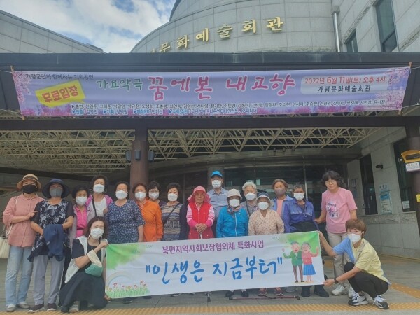 이번 가요악극 관람에는 관내 문화소외계층 12가구가 참가했으며 북면지역사회보장협의체 위원들이 봉사자로 참석했다.