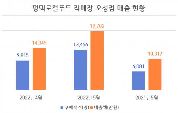 특히 매출 증가와 함께 출하 생산자와 판매품목, 구매고객수 등 전반적인 직매장 활성화는 평택시 로컬푸드에 대한 생산자와 소비자 간의 공감대가 확산되고 있음을 보여주는 청신호로 받아들여지고 있다.