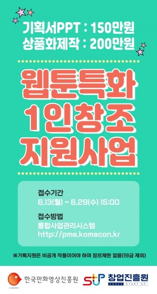 [뉴스써치] 한국만화영상진흥원이 웹툰 작가의 1인 창업을 위해 ‘웹툰특화 1인 창조기업 지원센터’를 운영한다.