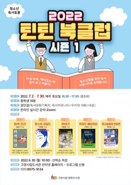 여름방학을 맞이해 재미있게 읽을 수 있는 문학 위주의 ‘회색 인간’, ‘몬스터 차일드’, ‘까대기’, ‘위저드 베이커리’, ‘독고솜에게 반하면’ 총 5권의 책을 선정해 5주 동안 진행 될 예정이다.