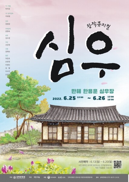 뮤지컬 ‘심우’ 공연은 6월 25일 부터 26일 까지 총 3회에 걸쳐 진행한다. 특히 한용운 선생의 유택 성북동 심우장을 배경으로 펼쳐 더욱 깊은 감동을 안길 예정이다.