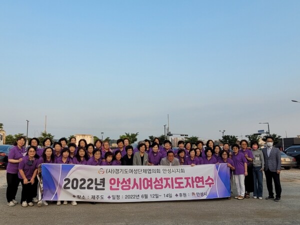 [뉴스써치] 안성시 여성단체협의회은 지난 12일부터 14일까지 2박 3일 동안 여성의 지역사회 참여를 이끌고 시대 변화에 대응하는 여성능력을 향상하기 위해 제주도에서 ‘2022년 안성시 여성지도자 연수회’를 개최했다.