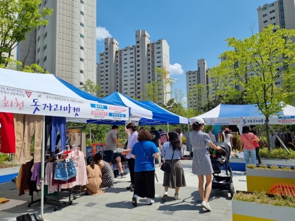 ‘회천 돗자리마켓’은 청소년들과 지역사회 주민들이 함께 하는 공동체 의식을 느끼고 사용 가능한 중고물품 또는 사용하지 않는 새 상품을 판매하며 환경도 지키고 올바른 소비문화에 대한 가치관을 가질 수 있도록 마련됐다.