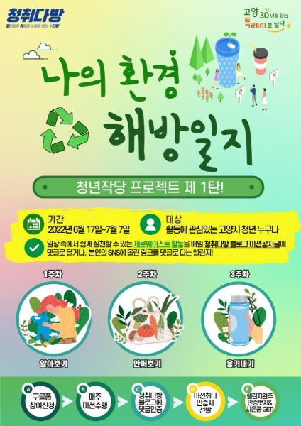 프로젝트 1탄인 ‘나의 환경해방일지’ 챌린지는 환경의 달 6월을 맞아 일상 속 제로웨이스트 활동을 SNS로 공유하며 소통하는 방식으로 진행된다.