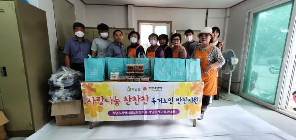 이 날 협의체에서 준비한 메추리알 장조림, 나박김치, 가지강정을 직접 만들고 관내 위치한 가남 생선구이에서 영양 만점 멸치볶음, 소연이네 떡집에서 마음의 정을 담아 지원한 떡과 협의체 사업인 ‘시원하고 따뜻한 겨울나기’에서 준비한 선풍기와 함께 홀로 사시는 어르신 80가구에게 전달했다.