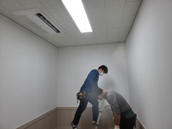 보산동 행정복지센터는 새마을회원들의 편안하고 쾌적한 휴식 공간 마련을 위해 온열 바닥, 벽체 정비, 천정 텍스, 천정형 시스템 냉난방기 등을 설치하는 공사를 진행 중이다.