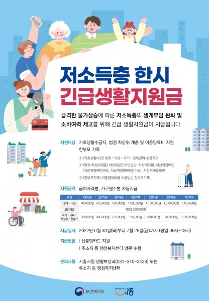 이번 지원금은 정부의 2차 추가경정예산 편성에 따라 한시적으로 지원하며 전액 국비로 지급된다.