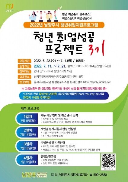 교육 수료자에게는 참여 수당과 취업 시 취업 성공 수당이 남양주사랑상품권으로 지급될 예정이다.