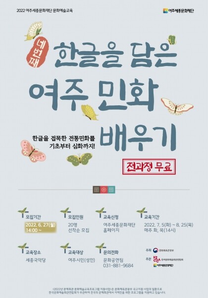 ‘한글을 담은 여주 민화배우기, 네 번째’는 여주에 영면해 계신 세종대왕이 창제한 한글을 민화에 접목한 여주만의 특색이 담긴 민화실기수업이다.