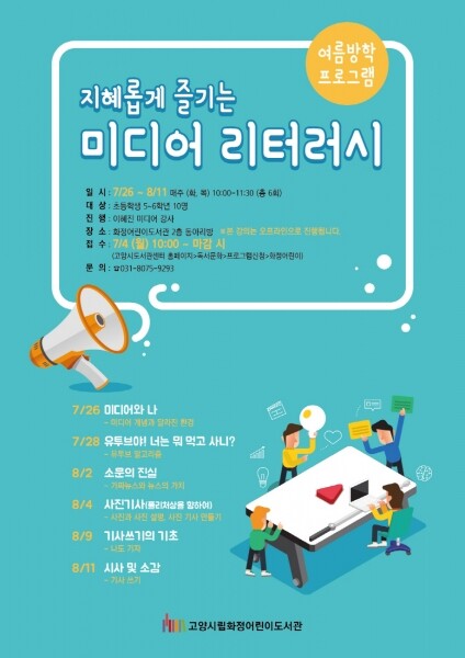 화정어린이도서관 문화행사 담당자는 “이번 프로그램을 통해 어린이가 스스로 미디어 생활을 돌아보고 올바른 콘텐츠 시청에 대한 기준을 정립할 수 있도록 지도할 것”이라고 말했다.