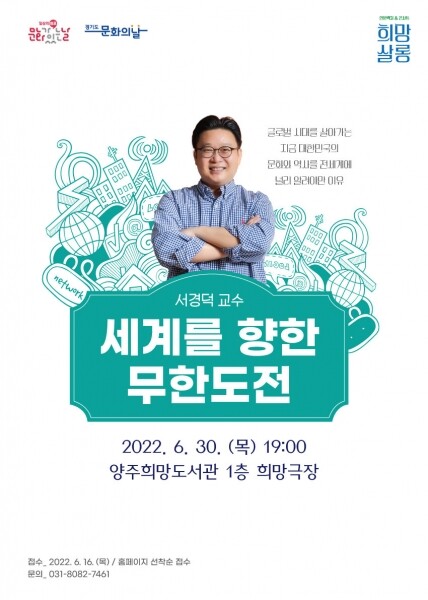 조명희 평생교육진흥원장은“경기도 문화의 날에 진행되는 인문학 강연과 문화예술과의 콜라보를 통해 독서와 일상, 문화를 매개로 공감하고 소통하는 시간이 되길 바란다”고 전했다.
