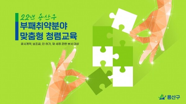 ‘부패취약 분야 맞춤형 청렴교육’ 참석인원은 총 50명. 28일 낮 3시부터 2시간동안 용산구종합행정타운 지하 3층 용산아트홀 문화강좌실에서 진행된다.
